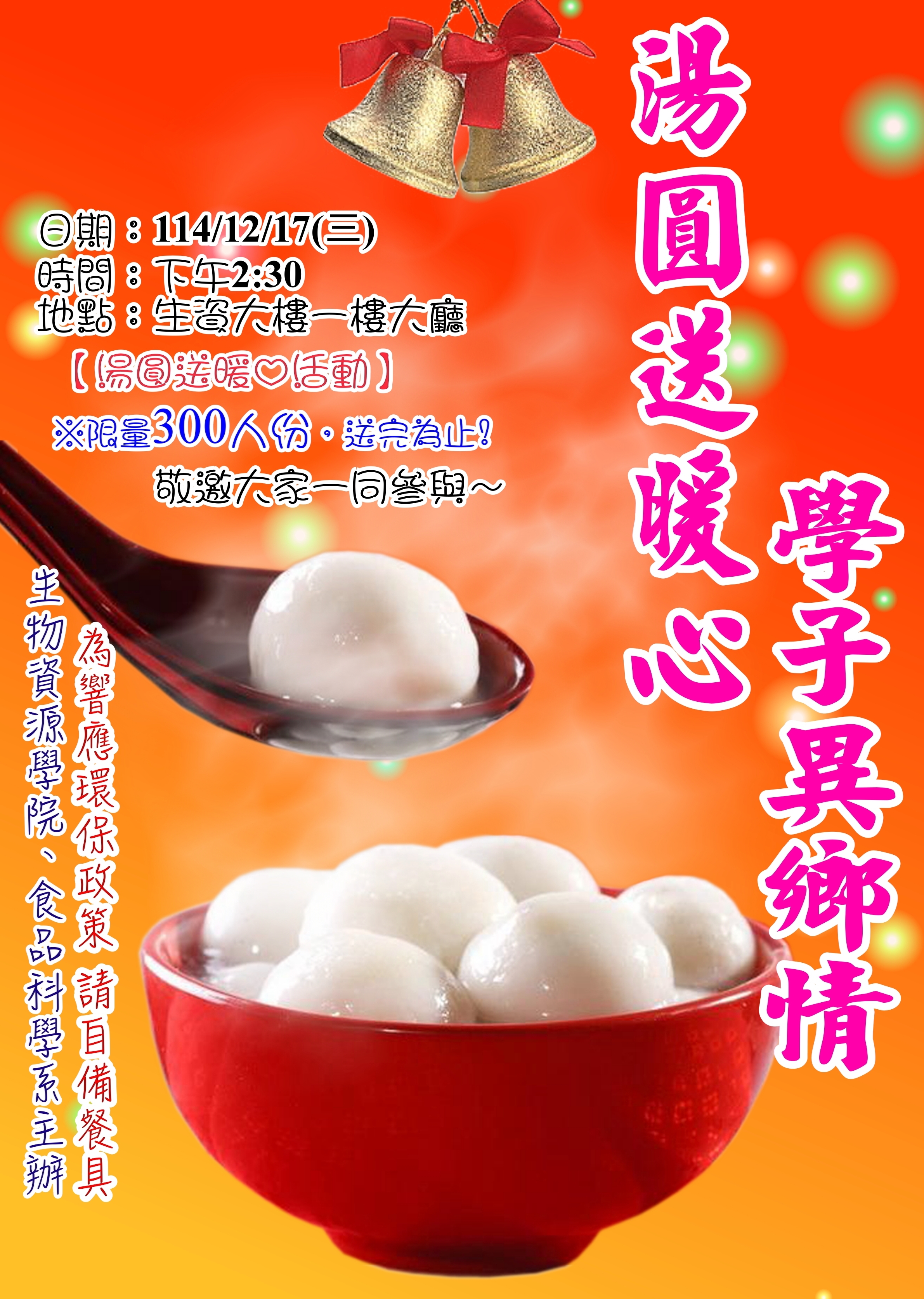 12/17(三)14:30-生資院-湯圓送暖心.學子異鄉情活動